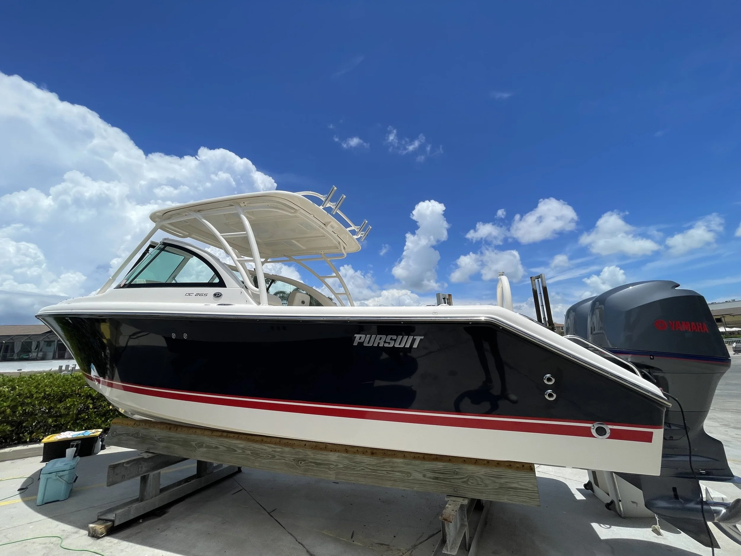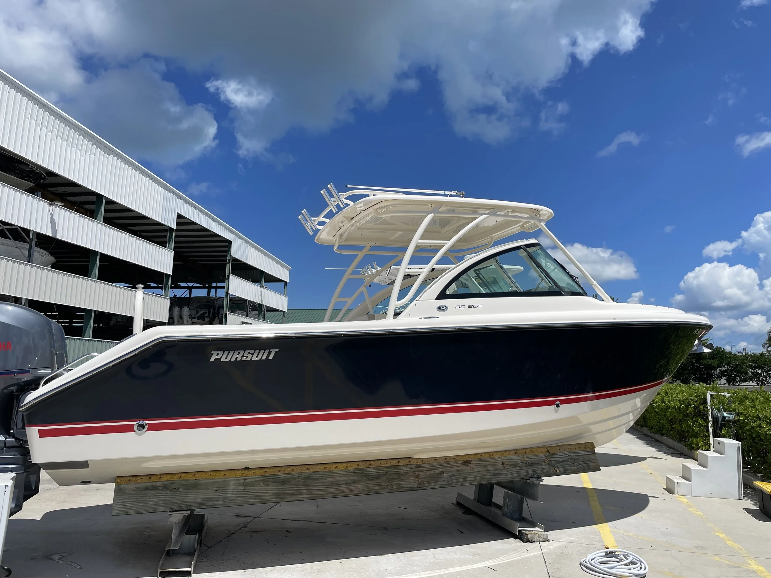 RECENTLY SERVICED INDOOR STORED, PURSUIT DC 265 ON MARCO ISLAND, FLORIDA. 538 HOURS, TWIN F150 YAMAHA OUTBOARDS, UPDATED GARMIN, NEW CHARGING SYSTEM. $ 88,900 CALL FOR DETAILS OR AN APPOINTMENT FOR A SHOWING. AT PORT 32 MARCO ISLAND, FLORIDA.
